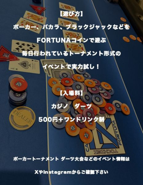 栃木市初のアミューズメントカジノ& ダーツバー FORTUNA